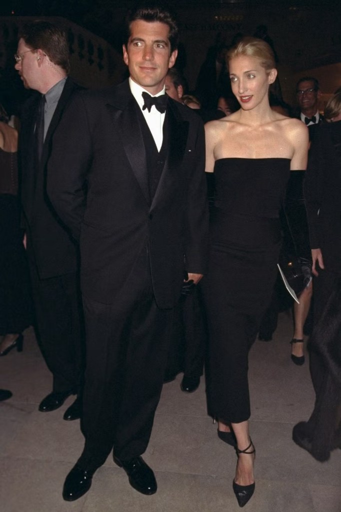 - Then: Carolyn Bessette’s silk dress and bun.
