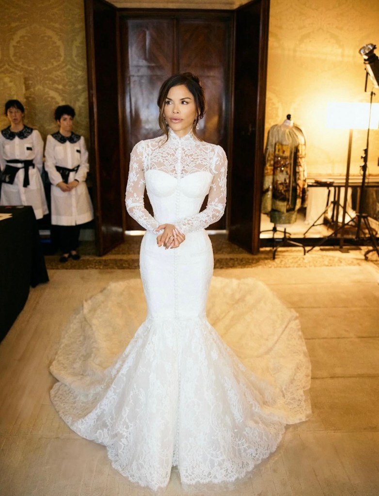 Lauren headed down the aisle in a custom white Dolce & Gabbana lace dress which took its nod from iconic Italian actress, Sophia Loren.