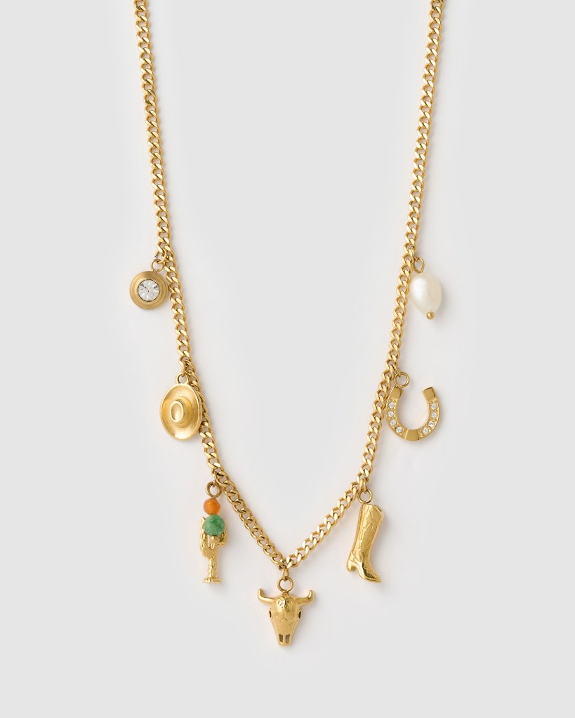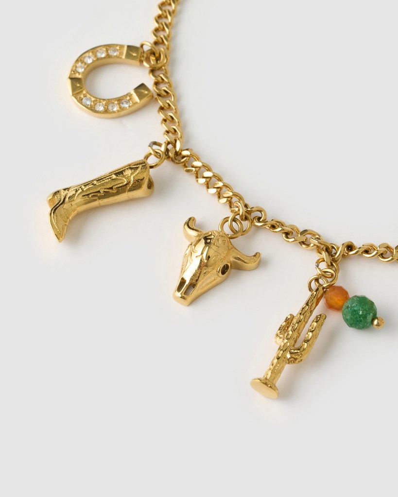 Arms Of Eve’s collection balances whimsy with wearability. The Rodeo Charm Necklace (RRP $139) makes a statement without overwhelming, perfect for layering with other gold chains. Meanwhile, the Lucky Horseshoe Charm (RRP $39) is a subtle nod to Western tradition and doubles as a good-luck talisman, while the Cowboy Boot Charm (RRP $39) is playful, cheeky, and destined to be a conversation starter. Together, these pieces give you endless styling possibilities, letting you dip into the cowboy core trend in a way that feels chic and uniquely your own.