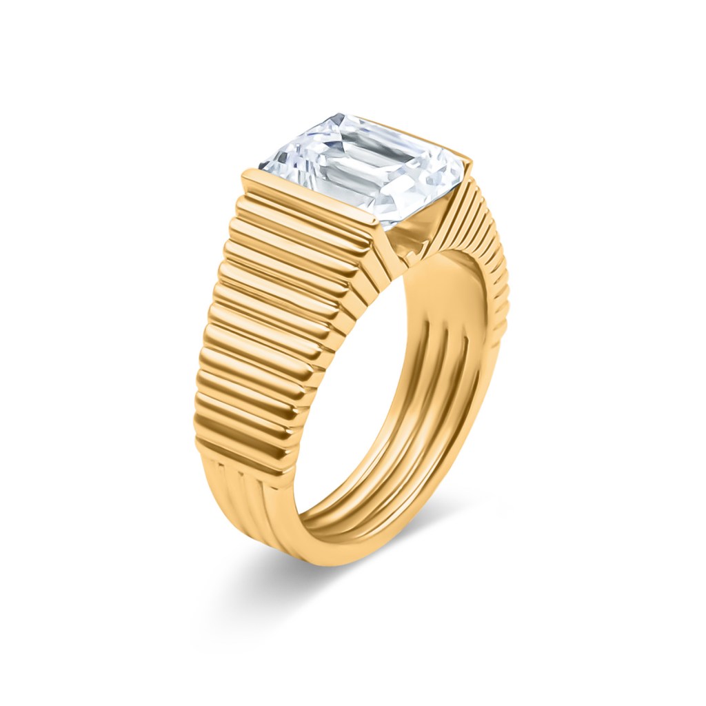 The broader trend? Intentional individuality. We’re seeing a move away from cookie-cutter solitaires and towards rings that reflect personal taste and values. East-west settings are on the rise, yellow gold is in vogue, and old-world cuts like the old mine and cushion are back in style. Lab-grown diamonds are also here to stay, bridging luxury and sustainability.