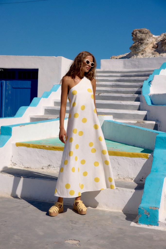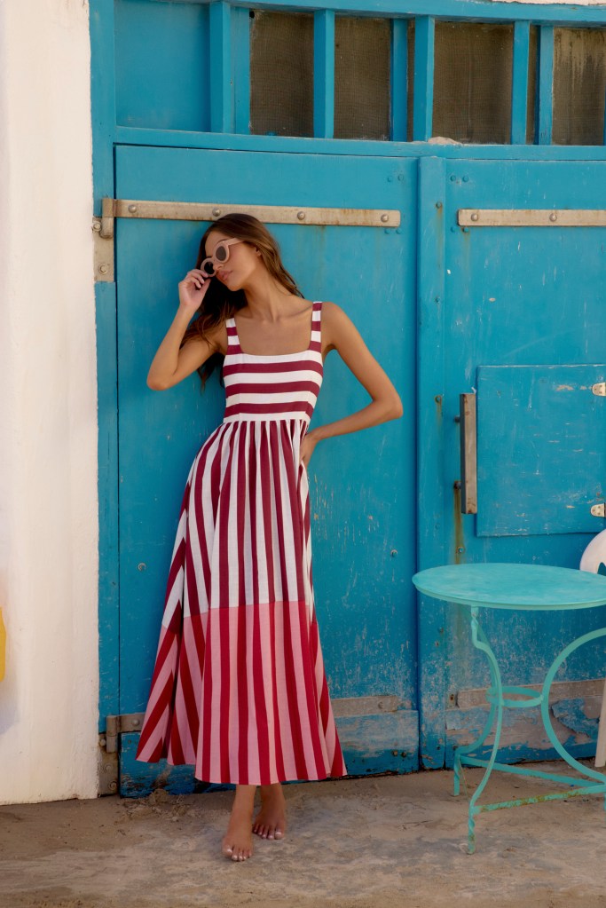 The Madison Dress in Paxi brings soft colour-block panels in Spritz Red and peach, creating an understated statement for days that start at brunch and end by the sea. Meanwhile, the Minka Mini Dress in Naxos revives a Zimi classic with its signature asymmetrical neckline, bridging that elusive day-to-night balance. For those who love a little playfulness, the Margot Mini Dress in Kimolos offers candy-striped charm with clean lines, perfect for coastal strolls and lazy weekend markets.