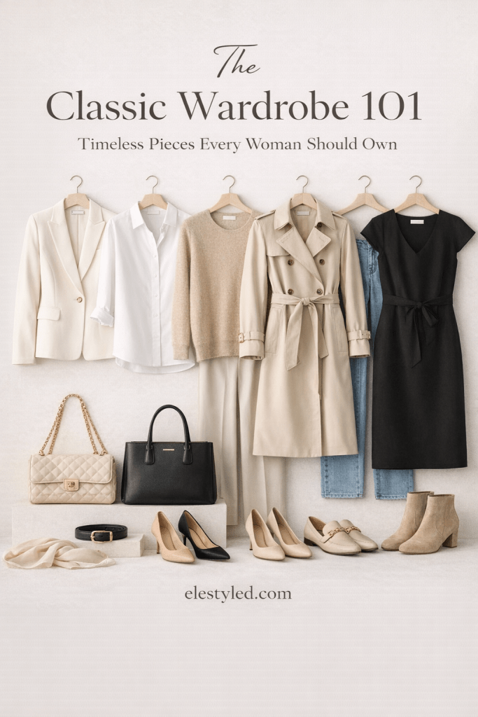 A classic wardrobe is a collection of timeless, versatile clothing pieces that work together regardless of trends. It focuses on fit, quality, and neutral colours so outfits always feel relevant and easy to style.