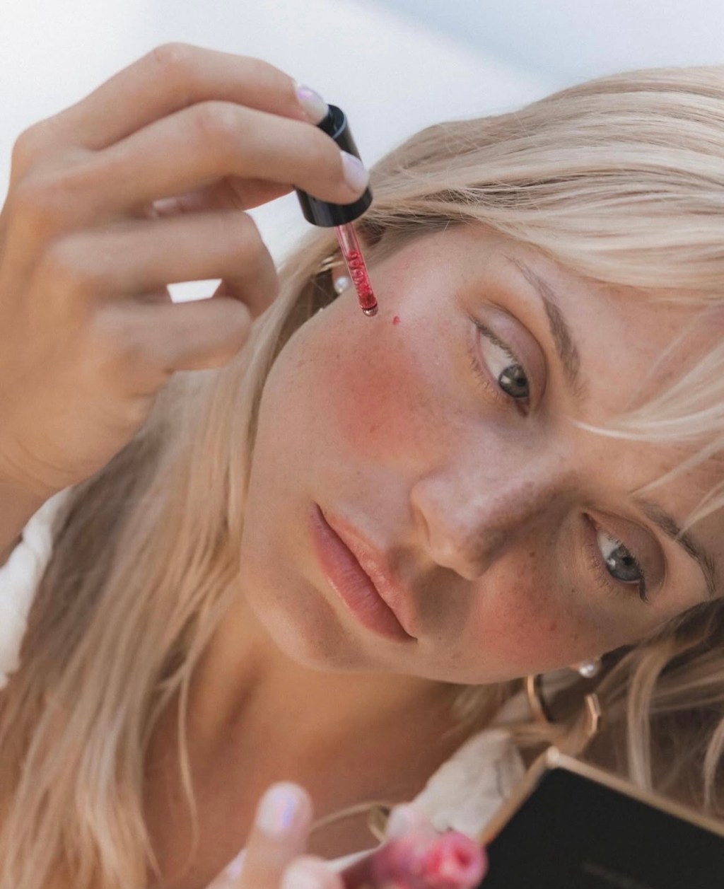 Colour Wash is water based and incredibly light. The texture feels almost like a a watery serum, gliding across the skin without dragging or settling into pores. You can apply it with your fingers for a more organic finish, or use a small blush brush if you prefer precision. Either way, it blends effortlessly and dries down to a soft, skin like glow rather than anything sticky, shiny or chalky.